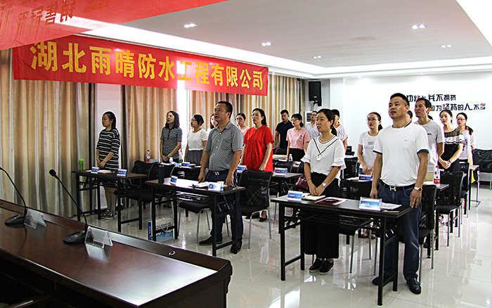 隨后公司全體人員觀看了一段振奮人心的視頻短片。相信我們每個人在人生中都會遇到各種不同的困境,在困境中,不放棄、不屈服、人生總會有答案。把每一天當做最后一天來過,我們的人生從此將會不同。人生不是經歷了什么,而是你想要什么就努力去爭取。之后在這種鼓舞人心的氛圍中,雨晴防水集團員工對下半年的銷售目標作出了鄭重承諾,并將為之努力奮斗。